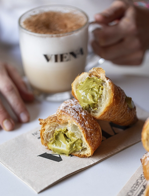 Al Viena hi trobareu opcions llamineres com el cinnamon roll, pastissos, la tartelette de poma, la magdalenta de xoco blanca, el beignet de xocolata…