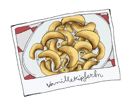 Cuando hemos llegado al mercado me he quedado boquiabierta mirando un tenderete de comidas: salchichas, almendras garrapiñadas y unos gofres que goteaban mermelada de fresa por todos lados...