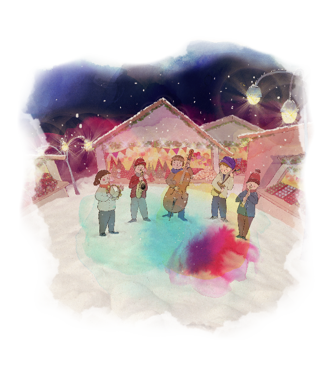 Entonces Bruna nos ha encontrado a Fritz y a mí. ¡Estábamos bailando en medio de la plaza, rodeados por un grupo de músicos que cantaban villancicos!